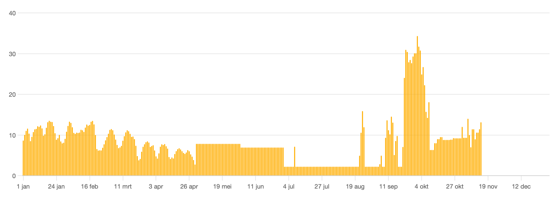 Het kan gebeuren dat je verbruiksgrafiek er onverwacht uitziet, bijvoorbeeld met een vlak verbruik over meerdere kwartieren of dagen. Dit heeft meestal te maken met tijdelijke onderbrekingen in de connectie van je slimme meter met het dataplatform van EDSN waardoor er minder meterstanden worden doorgestuurd. Dit kan variëren van enkele kwartieren tot zelfs meerdere dagen. Zodra de connectie hersteld is, ontvangt EDSN opnieuw meterstanden die wij vervolgens weer kunnen opvragen.