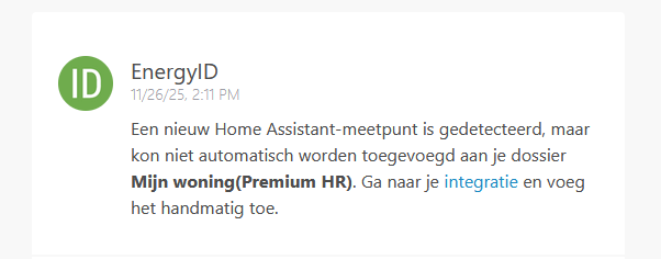 - Klik op Integratie toevoegen en zoek naar "EnergyID".